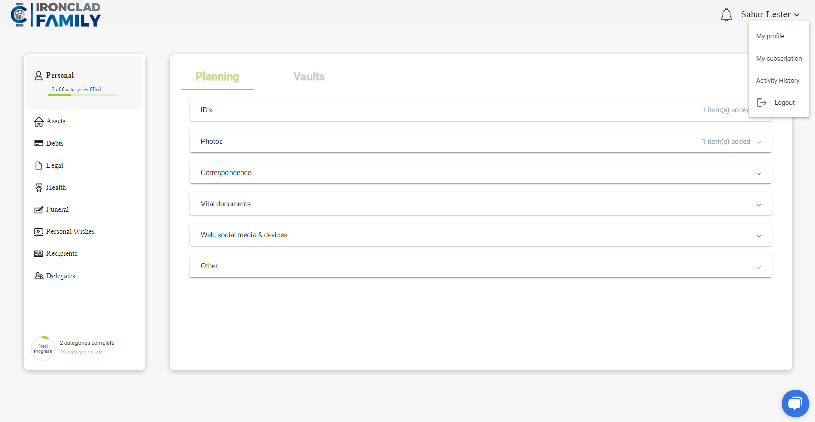 1) Click on the drop-down arrow to the right of your name in the upper right corner of the screen. Select My Subscription.