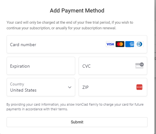 2) Scroll to the bottom of the form and click on Update Payment Method.