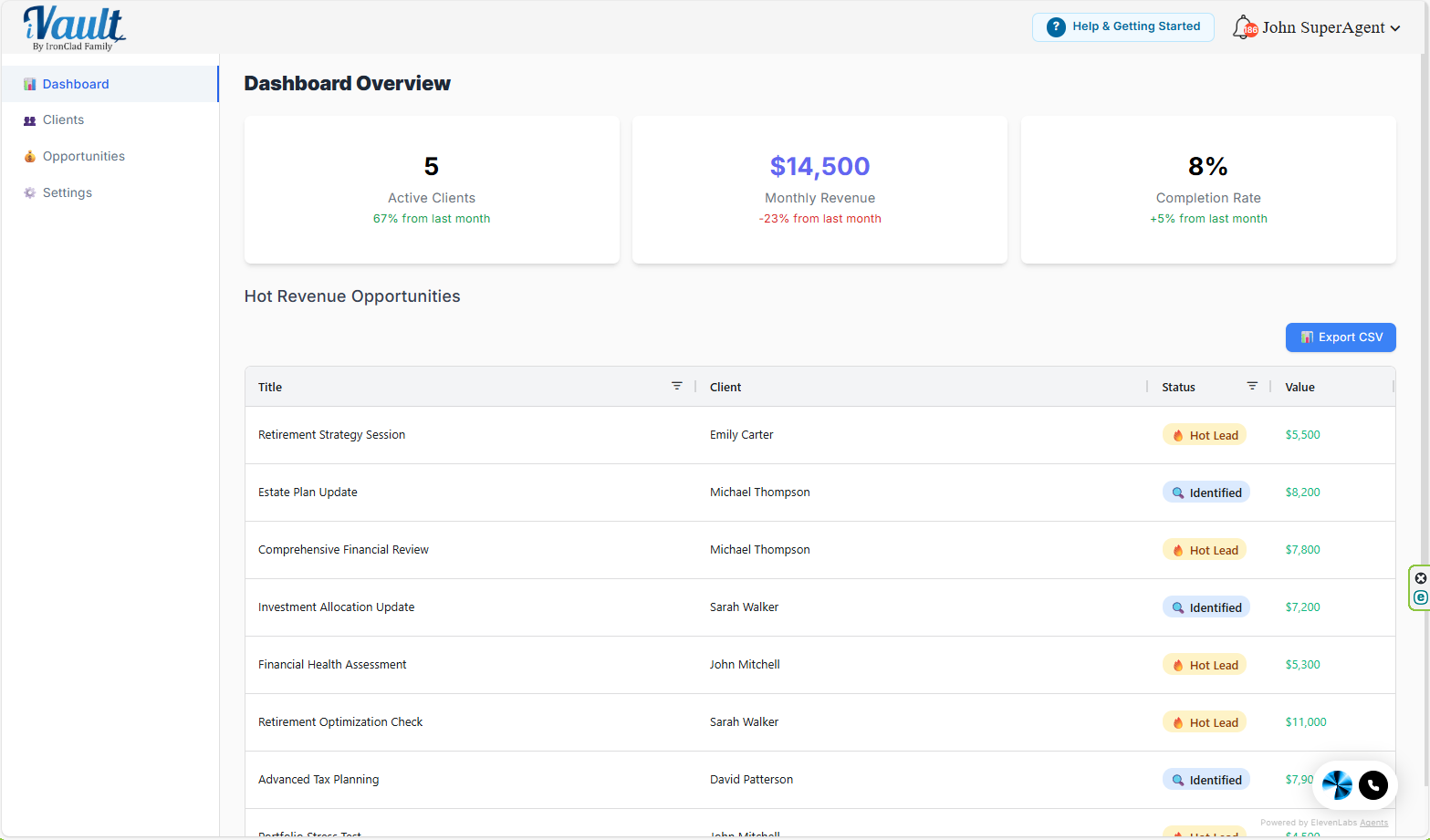 - Decision-making: What you should do next (go to Clients, Opportunities, or Settings)