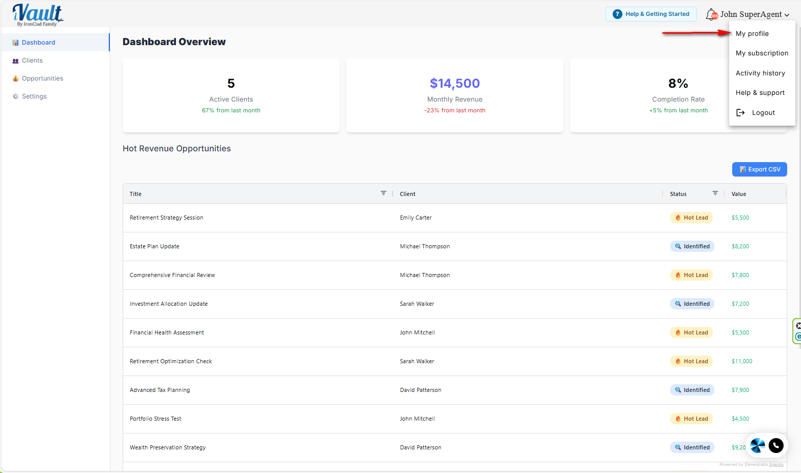 Recommended order for new advisors: Verify email → complete profile → verify phone → enable 2FA → then add real clients. Doing this out of order is how advisors get locked out or fail verification mid-onboarding.