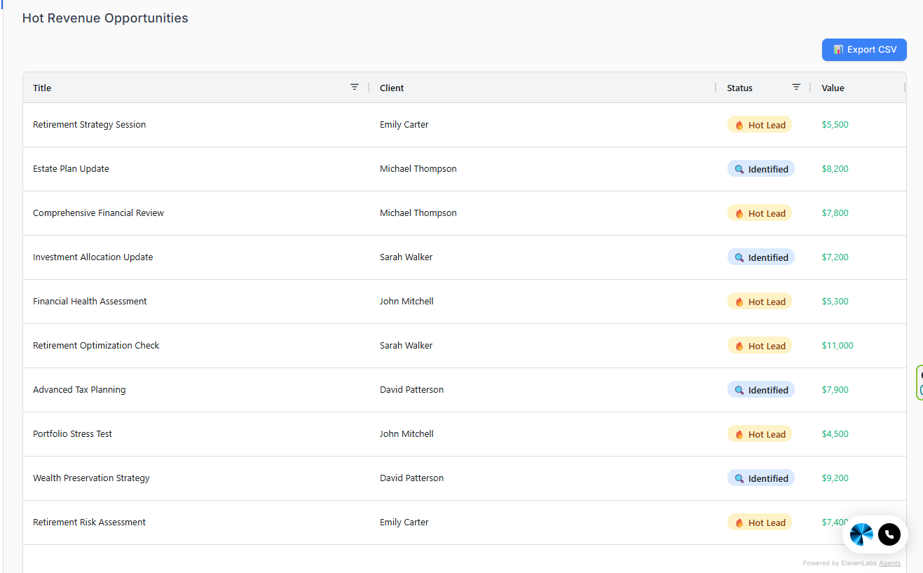 The Hot Revenue Opportunities table exists to keep you focused on the deals most likely to close soon. Use it as your daily revenue checklist.