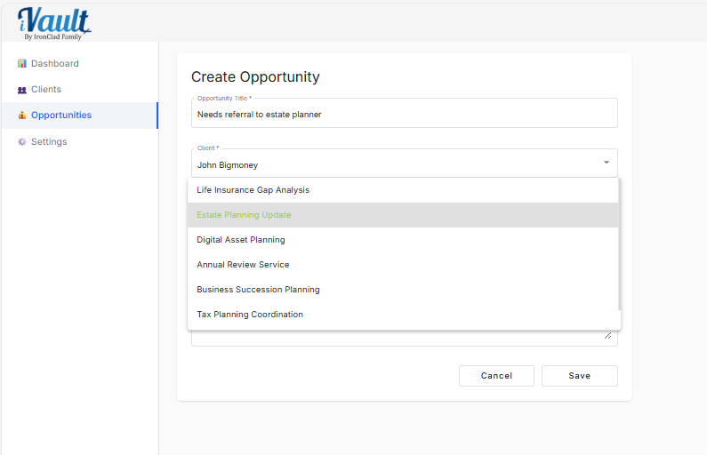 - Opportunity: the planning need or deal title