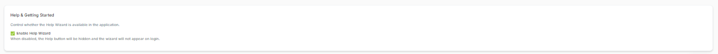 - Show Help Wizard button in header – controls whether the Help button is visible